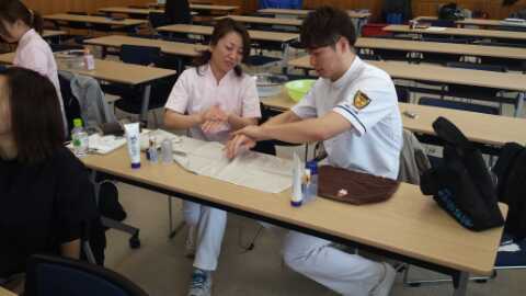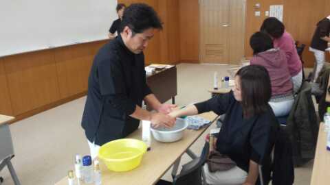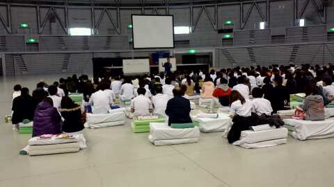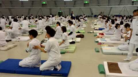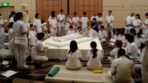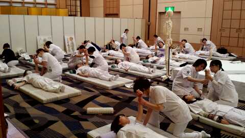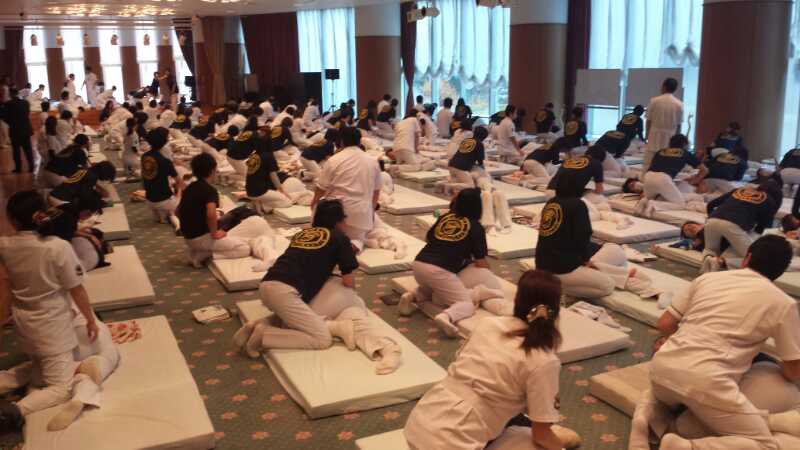 全体の実習の様子です(^o^)施術を受ける側の先生方は気持ちが良くて寝てしまいそうな方もいらっしゃいました(*´ω`*)